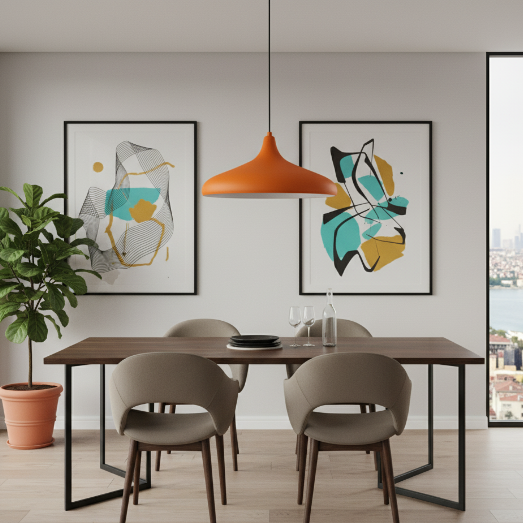 Modern Orange Pendant Light for Kitchen Island, Dining Room or Living Room
