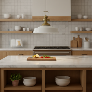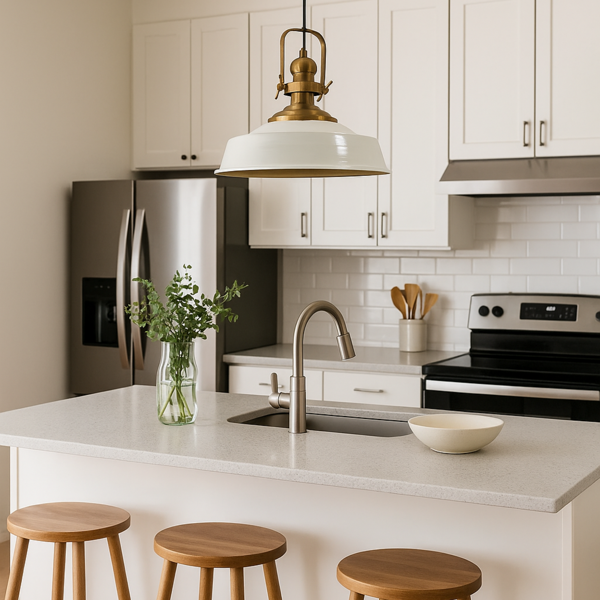 Clean Aesthetic: Matte white shade with antique brass accents for a sophisticated, versatile look.