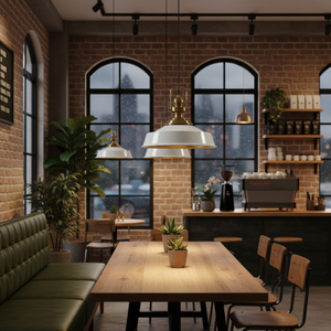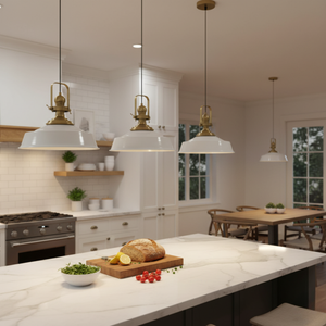 Featuring a crisp, matte white finished metal shade beautifully contrasted with classic antique brass hardware, this pendant light delivers a sophisticated industrial look. The pristine white shade maximizes light reflection, ensuring your space is bathed in a soft, inviting glow, creating an atmosphere of calm and contemporary style.