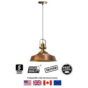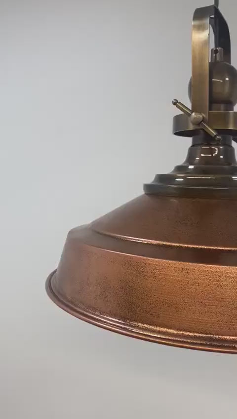 The lamp features a beautifully aged copper-finished shade paired with authentic antique brass hardware, offering a timeless industrial aesthetic that complements both modern and rustic decors. Its robust construction is built to withstand the demands of a commercial setting while its classic design provides a powerful visual statement.