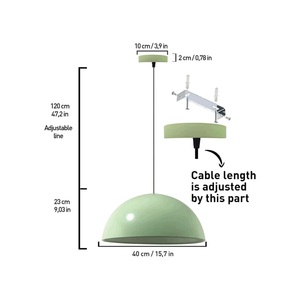 The soft mint green exterior pairs beautifully with the matte white interior, creating a clean and contemporary look while providing a gentle, natural illumination. With its large 40 cm dome shade and adjustable 120 cm hanging cable, this pendant light adapts effortlessly to a wide range of interiors.