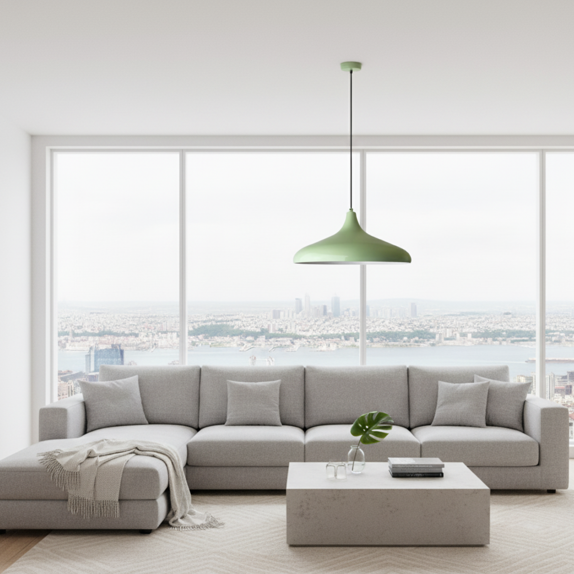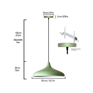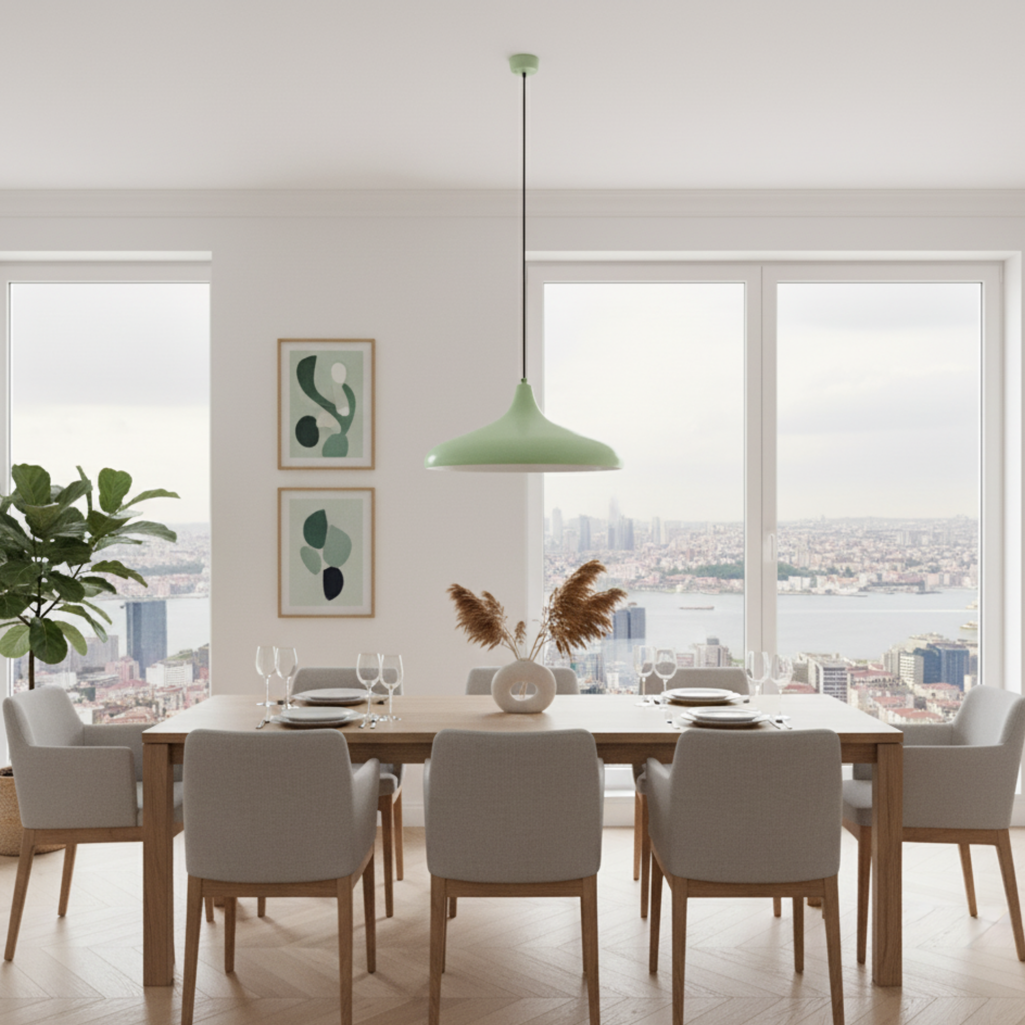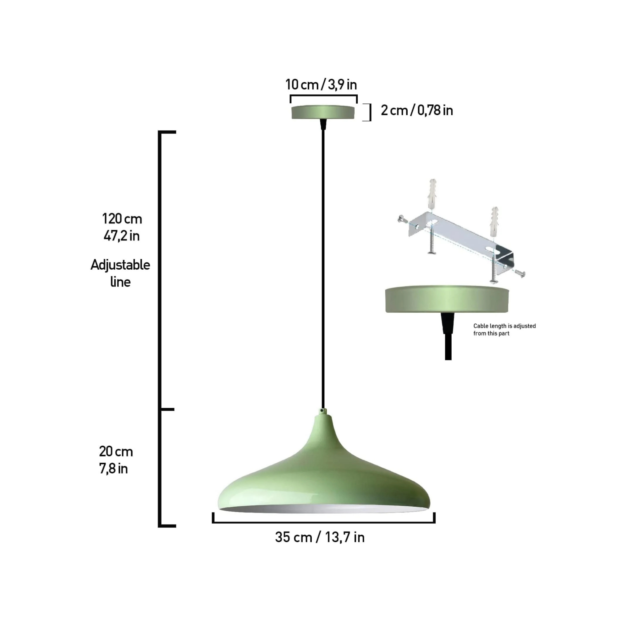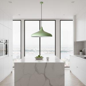 Add a touch of bold elegance to your space with our exclusively designed Mint Green Pendant Light. Crafted from high-strength metal, this pendant lamp offers a sleek and modern silhouette with a smooth matte finish, making it a perfect lighting feature for kitchens, dining areas, bedrooms, or living rooms.