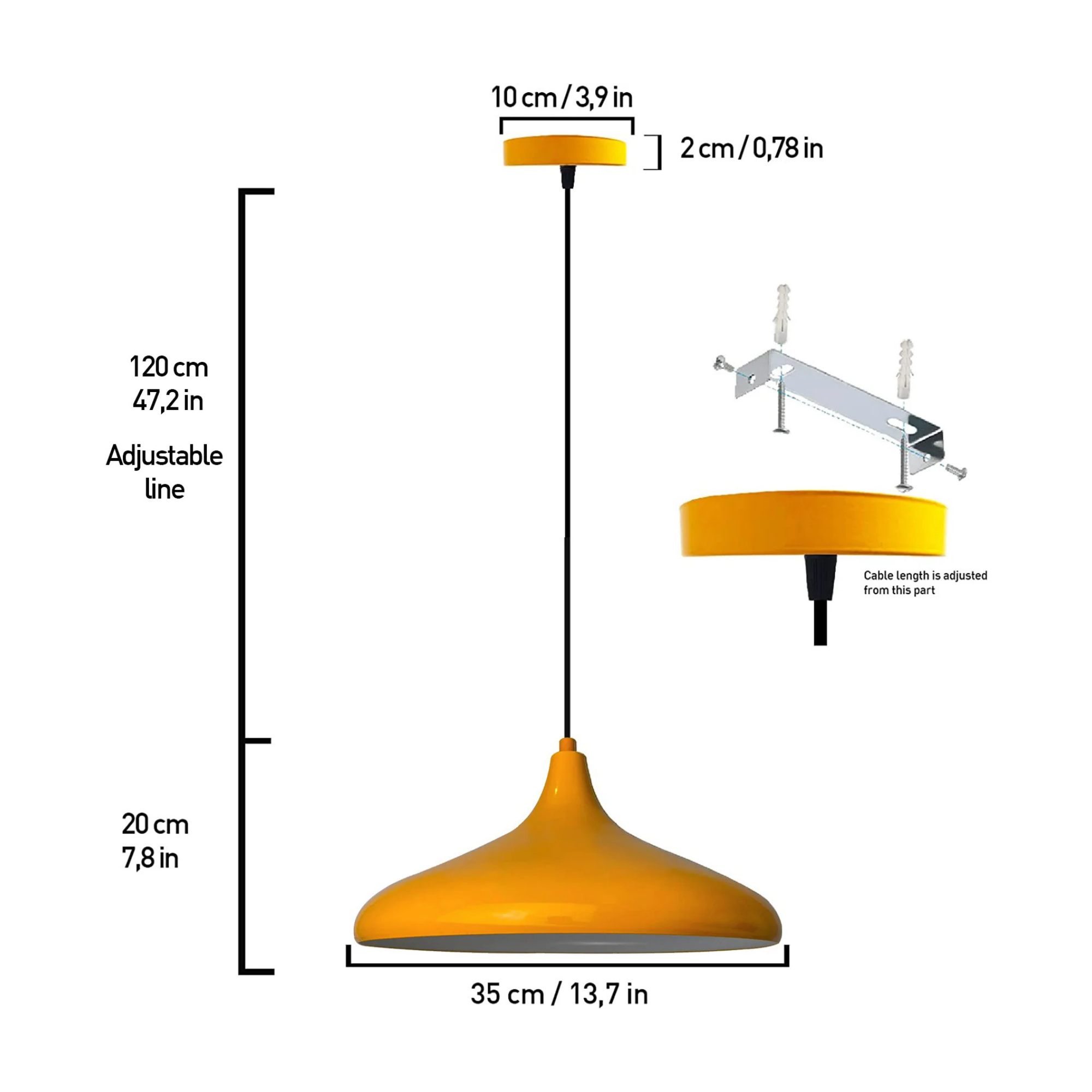 Add a touch of bold elegance to your space with our exclusively designed Mustard Yellow Pendant Light. Crafted from high-strength metal, this pendant lamp offers a sleek and modern silhouette with a smooth matte finish, making it a perfect lighting feature for kitchens, dining areas, bedrooms, or living rooms.